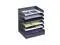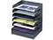 Classic office desk tray sorter offers contemporary finish. Slanted shelves feature finger notch-outs for convenient access. Decorative, textured powder-coat finish in black is durable and resists fingerprints.