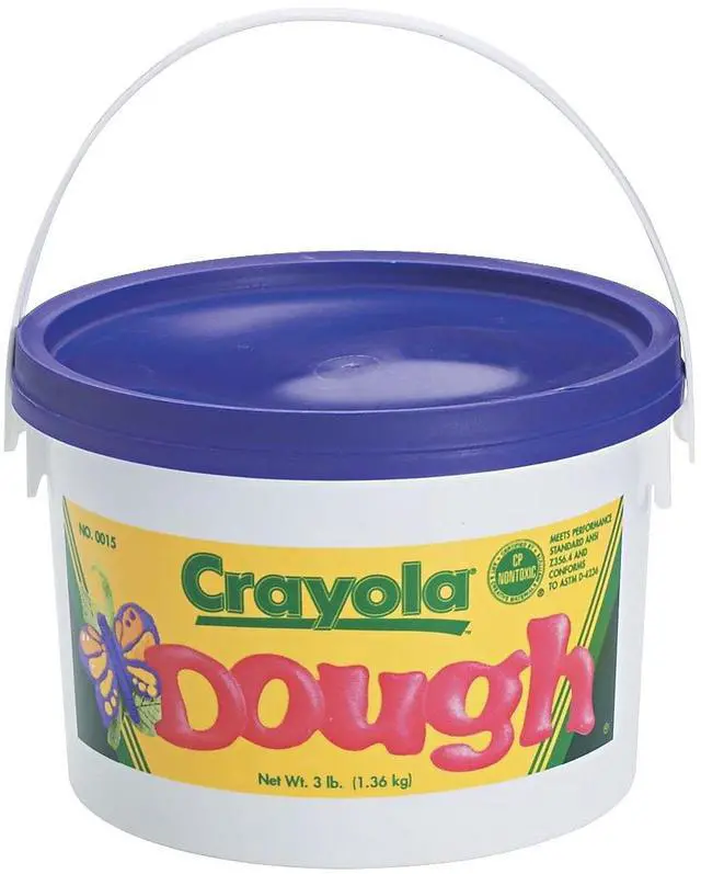 Crayola Dough is specially developed for early learning, has a soft texture and vivid colors. Comes in a economical 3 pound bucket. Crumble free for less mess. Sturdy, airtight storage bucket keeps dough soft and ready for use. Available in six vibrant colors: red, yellow, orange, purple, green and blue. Non-toxic, AP Seal.-- Purple
