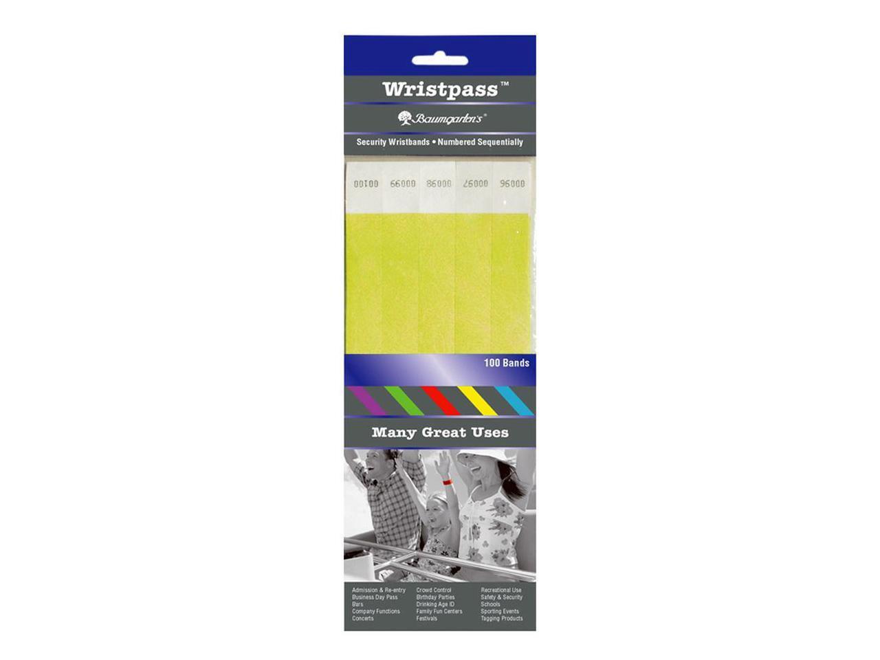 Baumgartens Security Wrist Band,Tear-Resistant,10"x3/4", 100/PK, YW 85070