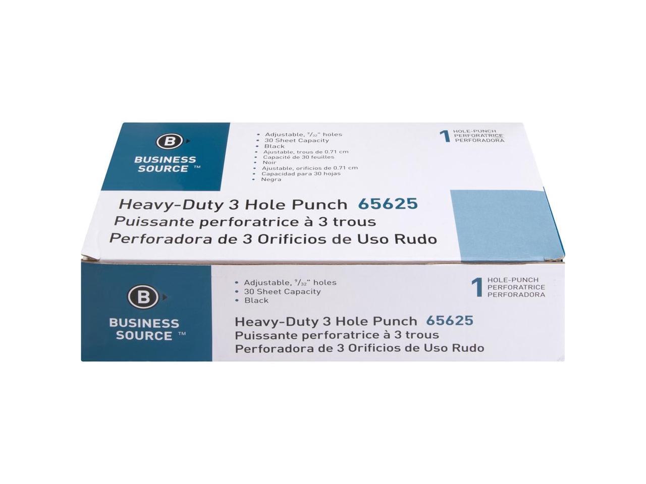 Business Source Heavy-duty Punch 3-Hole 9/32" 30 Sht Capacity Black 65625