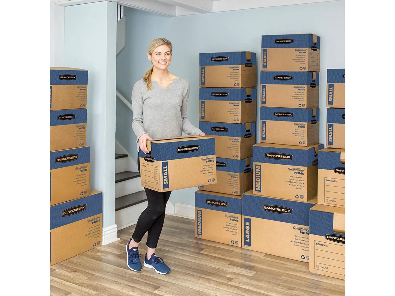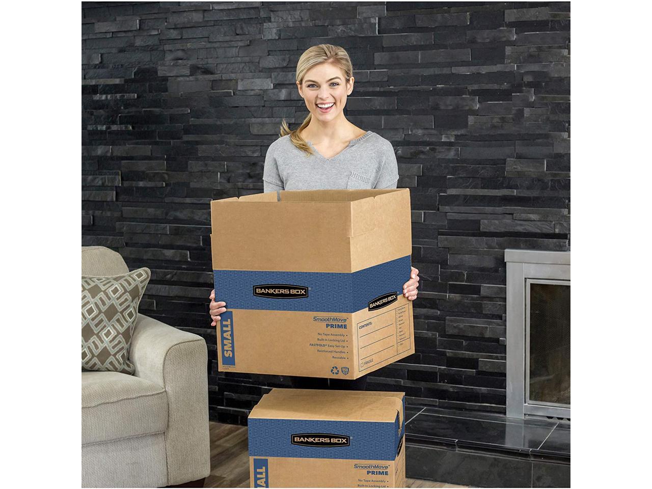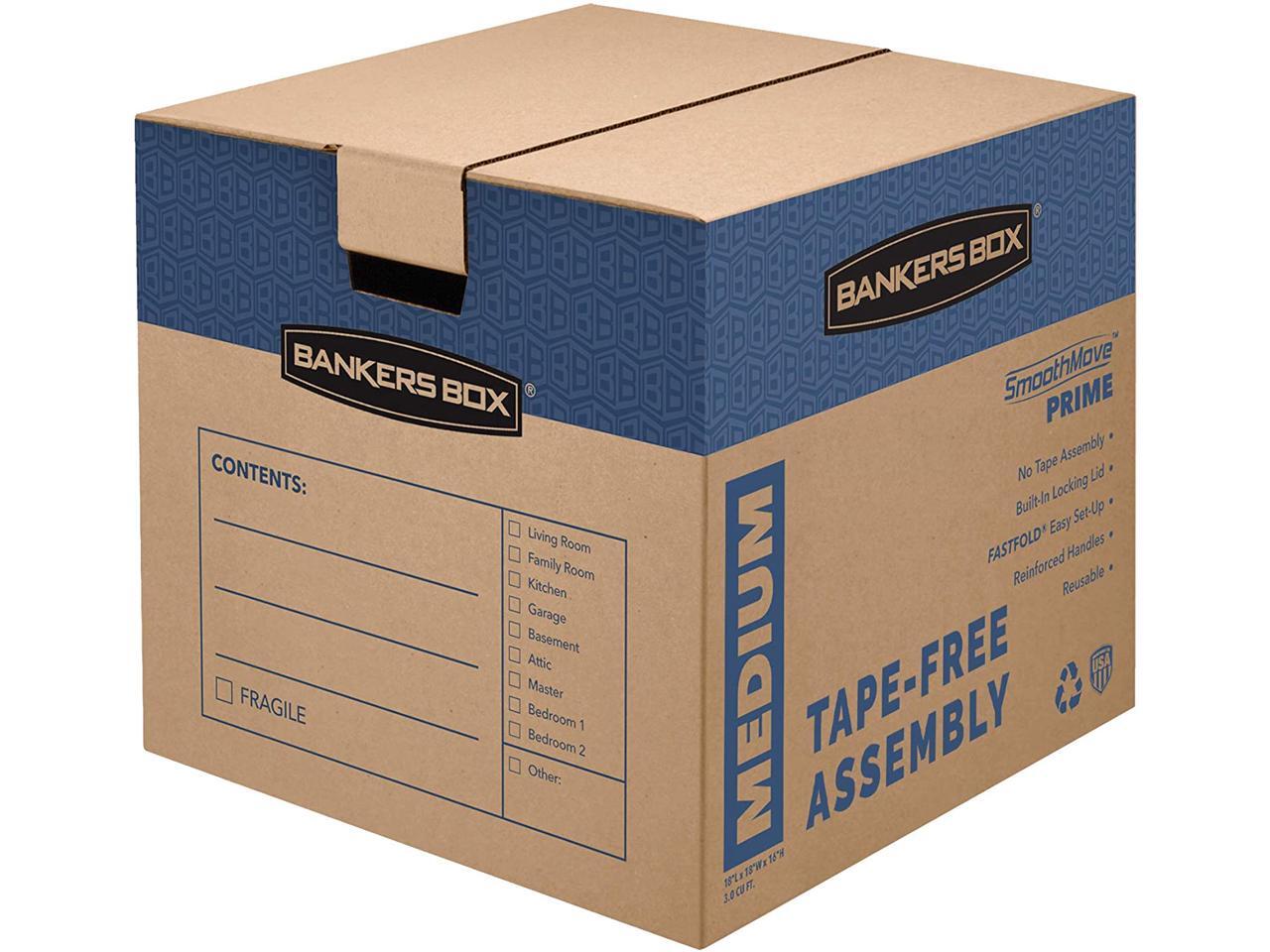 Bankers Box SmoothMove Prime Medium Moving Boxes 18l x 18w x 16h Kraft/Blue 8