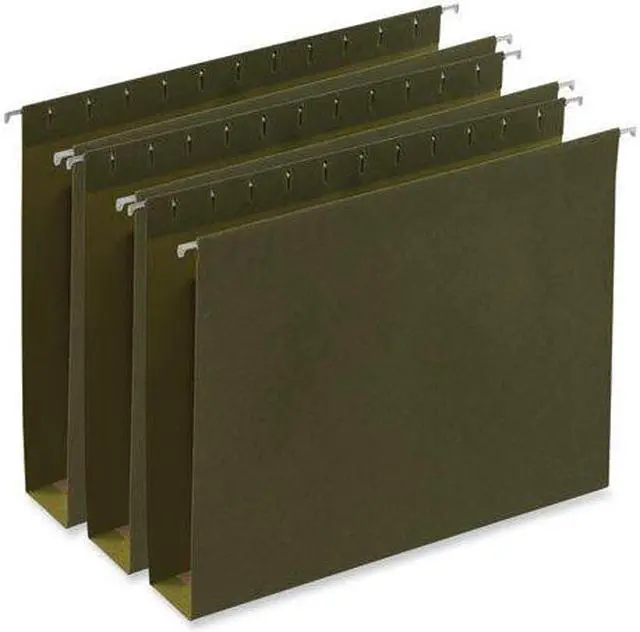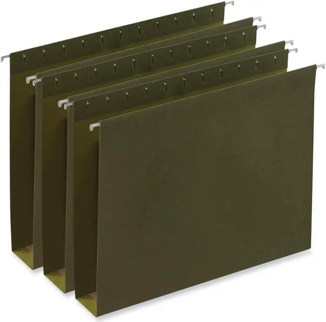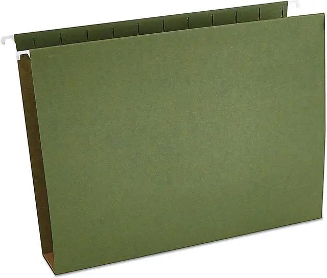 Bulky loads are no problem with this flat bottom design. Sturdy 11 pt. stock delivers long wear. Slotted for 1/3 or 1/5 cut tabs (not included). Acid-free. 2" Capacity. Folder Size Type: Letter; Max Folder Expansion: 2"; Folder Color: Standard Green; Color Family: Green.