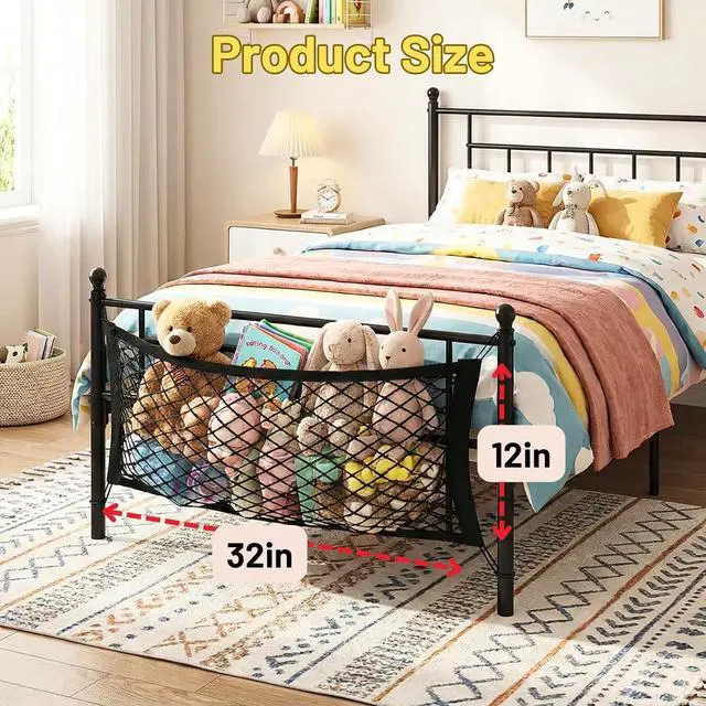 Bedside Bliss: Specially crafted for bedside companions, this plush toy storage net ensures your child's favorite toys are within arm's reach, creating a cozy and delightful bedtime atmosphere. It transforms your child's bedtime routine, making it more enjoyable and comforting. The toy storage net measures 32 in ×12 in (please confirm your bed size before purchasing to ensure it is suitable).