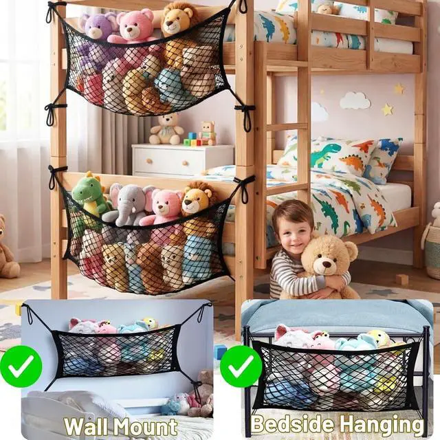 Fall in Love with OrganizationThe Bedside Plush Toy Storage Net is an excellent tool for instilling good organizational habits in children. It transforms rooms into tidier spaces, bringing joy to children as they see their plush toys neatly arranged and easily accessible.