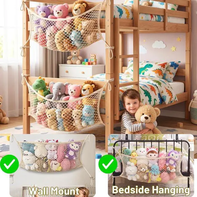 High Quality & Durable: Our storage net is not just any ordinary organizer. Crafted from high-quality cotton material, it provides a durable and secure solution for storing stuffed animals. Do not machine wash.