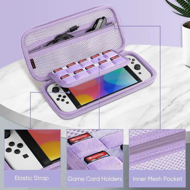 ![Alt view image 6 of 7 - Carrying Case for Nintendo Switch OLED Model 2021/Switch 2017, [Shockproof] Hard Shell Protective Cover Travel Bag with 10 Game Card Slots & Inner Pocket, Lilac Purple](https://c1.neweggimages.com/productimage/nb640/C5S1D2603150THC9M29.jpg)