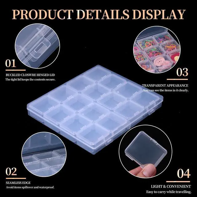 Crystal-Clear Craft StorageEach hinged-lid mini container is made of ultra-transparent, food-grade PP plastic - scratch-resistant, odorless, and shatterproof. Instantly identify beads,diamond art storage, or jewelry charms through the glass-like clarity, even in dim crafting spaces an essential feature for effective bead organizers and storage.