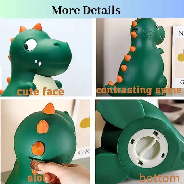 Cute dinosaur shape design is very easy to attract children's eye, look at absolutely fondle admiringly ! Children will have fun depositing money into their favorite cute piggy bank.