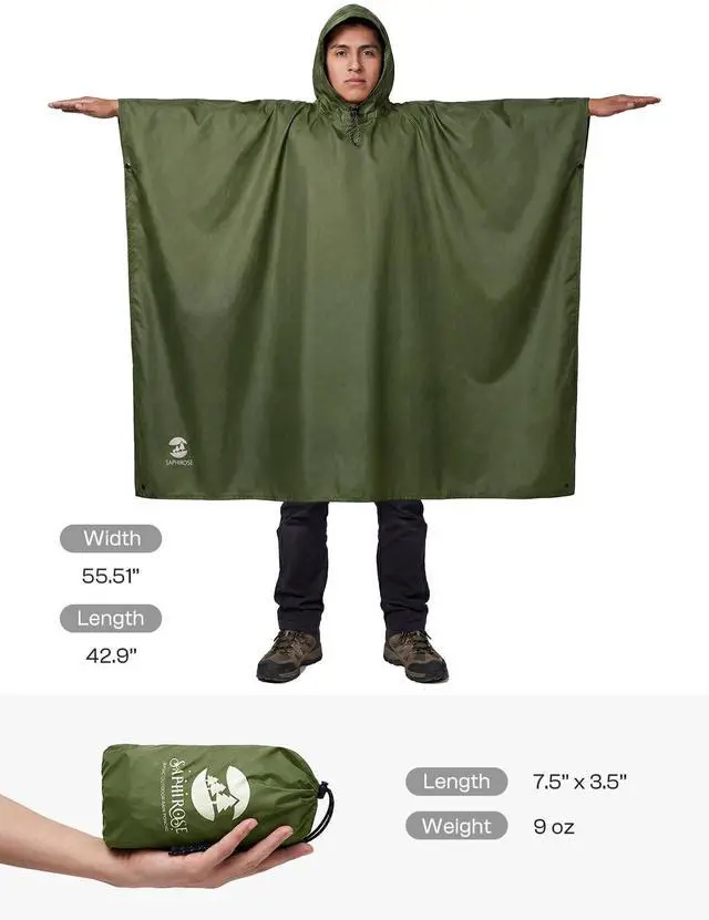• [Material & Waterproof Function]: Crafted from 100% Polyester with a strong waterproof backing featuring heat-sealed seams, this poncho is also windproof. It utilizes high-density polyester and a PU 5000MM waterproof coating to resist water, sand, and wind. All seams are caulking treated for durability, keeping you and your belongings dry.