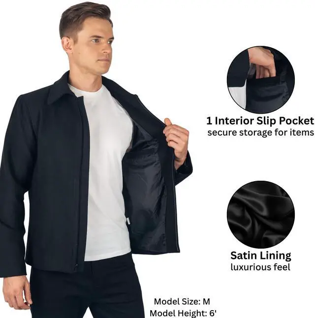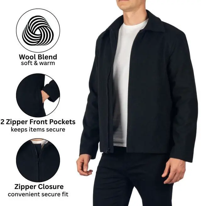 TIMELESS STYLE & VERSATILITY: This men' s wool blend jacket features a classic collar and simple, clean lines, making it a versatile addition to any wardrobe. Effortlessly transition from a professional, business casual look with slacks and a button-down to a relaxed weekend style with jeans and a sweater. Its sophisticated and timeless design ensures it will remain a staple in your closet for years to come.