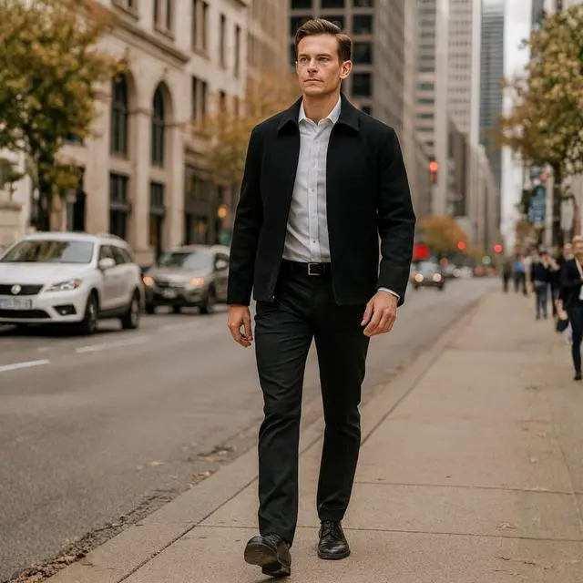 CLASSIC FIT & COMFORT: With a regular straight fit and a hip-length cut, this jacket offers a comfortable and flattering silhouette for men of all ages. It provides enough room for layering without feeling bulky, ensuring you look sharp and feel comfortable throughout the day. Its refined design makes it an ideal choice for travel, commuting, and everyday wear.