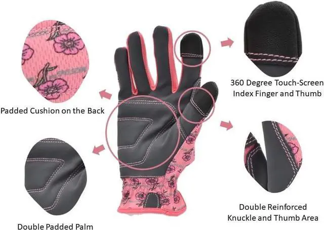These gloves are designed specifically to provide maximum protection and support for active women while working on tasks such as cutting branches, trimming hedges, and pruning bushes. They are made from durable materials that can withstand the wear and tear of regular gardening tasks. The pink color can add a touch of style and fun to the gardening experience. These gloves are designed to provide a snug, comfortable fit that allows for easy movement and flexibility. They may have reinforced fingertips and knuckle guards for added protection against cuts and scrapes. They also may have breathable materials to keep the hands comfortable during long periods of work. Additionally, some gloves may come with a coating of natural rubber, or other types of coating that can provide a better grip and protection against dirt, debris, and moisture. These gloves are perfect for the gardener who wants to keep their hands protected while working on pruning and trimming tasks.