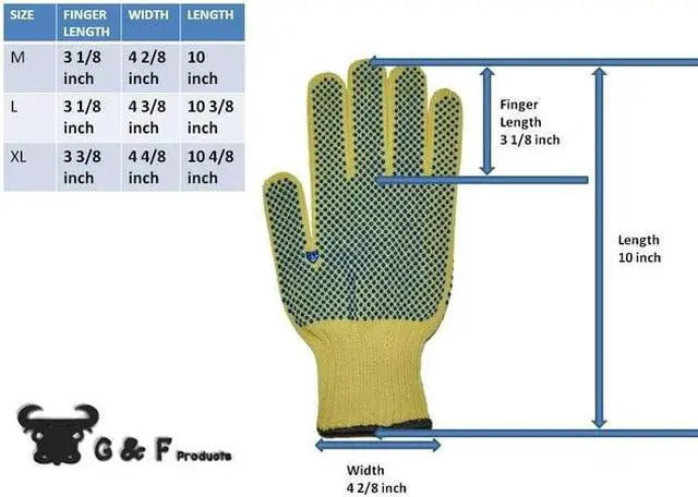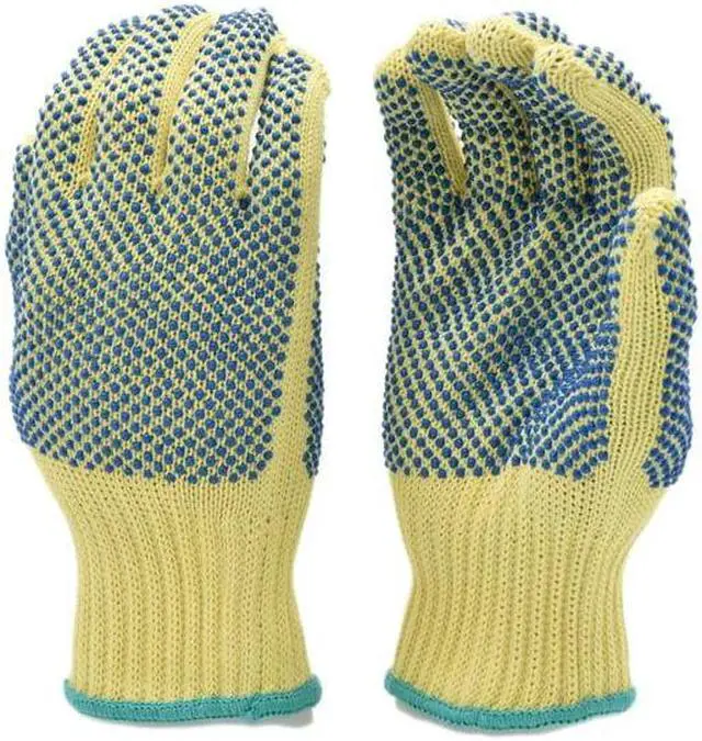 Kevlar cut-resistant gloves: designed to provide super protection from cuts; helps protect hands from sharp edges of metals, ceramics, glass, and other materials. PVC dots on both sizes provide a firm grip.
