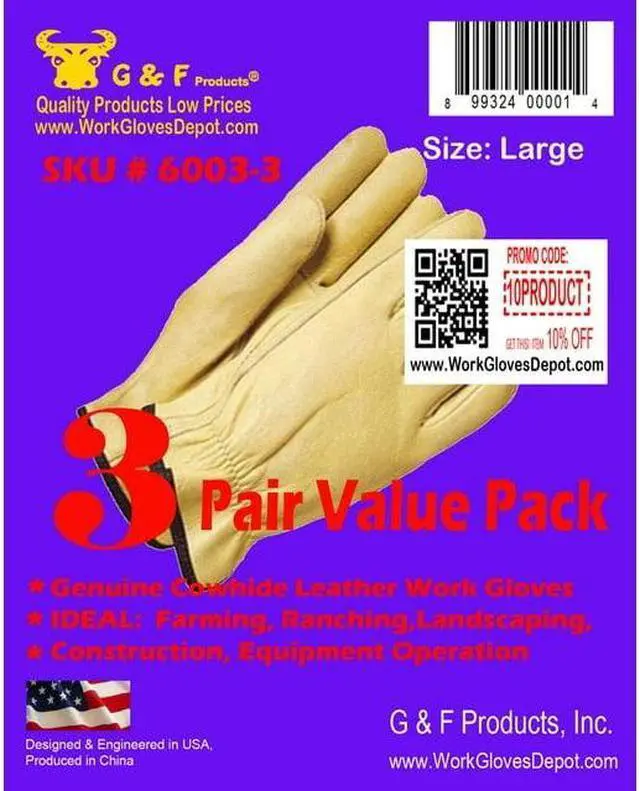 Whether you're tackling DIY projects, gardening, or general-purpose tasks, these gloves offer the perfect blend of style and functionality. Elevate your hand protection with the G & F 6003 Premium Genuine White Leather Gloves the ideal choice for those who value quality and versatility in their workwear.