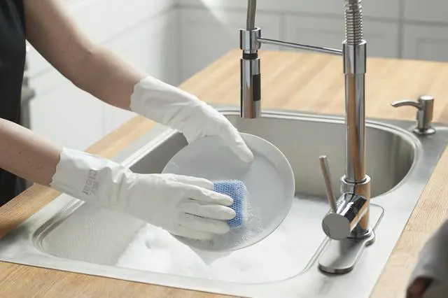 Protect your hands from harsh detergents with these comfortable, high quality constructed gloves.