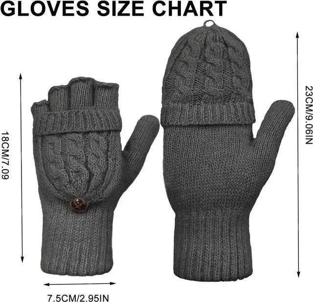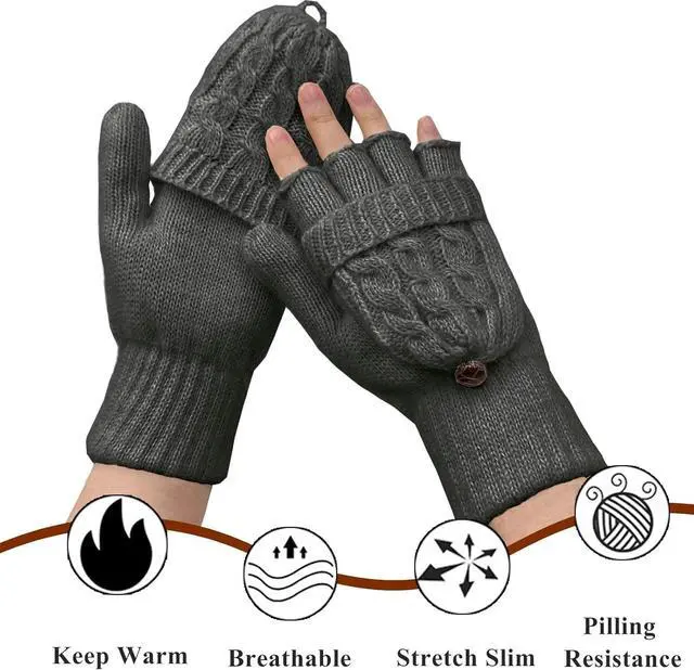 • Convertible Gloves in 2 Wearing Styles: There is no need to take entire gloves off anymore in cold weather! On one hand, they are warm mittens which are perfect for outdoor activities like running, walking, hiking, skiing and so on. On the other hand, flip the mitten cover down to gloves, they'are fingerless gloves which suitable for texting, typing, writing