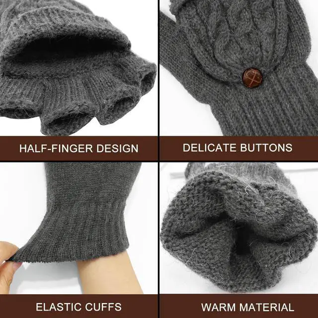 • Soft Material: Soft wool and acrylic blended material equipped with advanced weaving technology, those gloves are not only comfortable to wear, but also durable for a long time use. High quality environmental resin buttons connecting the mitten cover to gloves, make the gloves easier to use when converting into mittens and more fashionable