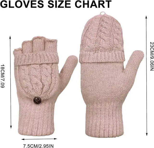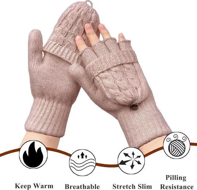 • Convertible Gloves in 2 Wearing Styles: There is no need to take entire gloves off anymore in cold weather! On one hand, they are warm mittens which are perfect for outdoor activities like running, walking, hiking, skiing and so on. On the other hand, flip the mitten cover down to gloves, they'are fingerless gloves which suitable for texting, typing, writing