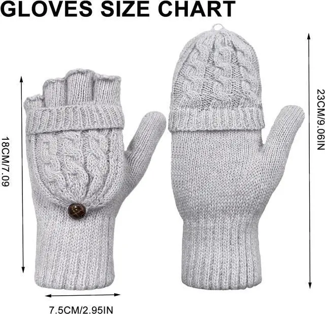 • Convertible Gloves in 2 Wearing Styles: There is no need to take entire gloves off anymore in cold weather! On one hand, they are warm mittens which are perfect for outdoor activities like running, walking, hiking, skiing and so on. On the other hand, flip the mitten cover down to gloves, they'are fingerless gloves which suitable for texting, typing, writing