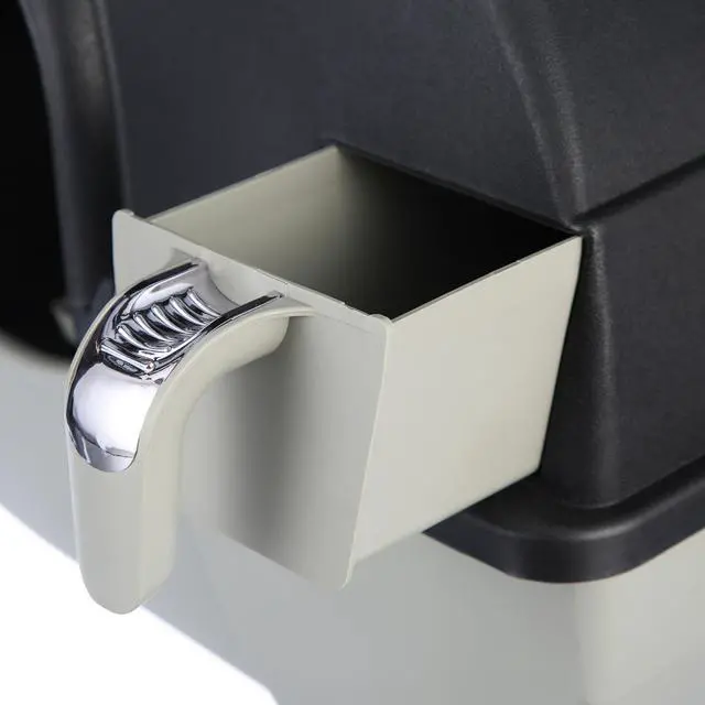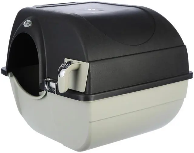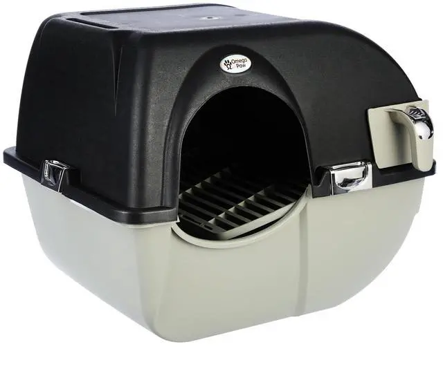 Easy Cleaning ELITE LITTER BOX REGULAR with extra features including integrated Litter Step, Chrome Plated Locking Clips and Accents and signature Midnight Black Color