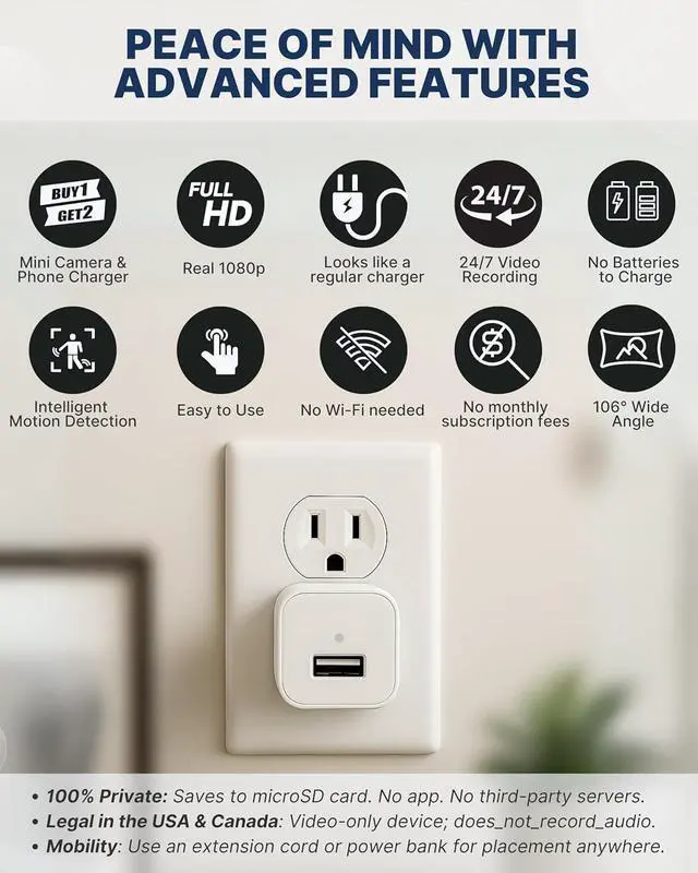 Special Feature 2026 Upgraded Edition / 1080p Full HD / Offline by Design for Full Control (No App or Cloud Exposure) / Local microSD Storage (included in select options) / Motion Detection / Video-Only Mode / Plug-In Power for Reliable Recording / Premium Bundle: Type-C onnector, Card Reader, USB Cable, 2-in-1 Charging Cable & Reset Pin / EN & ES User Manual2026 Upgraded Edition / 1080p Full HD / Offline by Design for Full Control (No App or Cloud Exposure) / Local microSD Storage (included in s2026 Upgraded Edition / 1080p Full HD / Offline by Design for Full Control (No App or Cloud Exposure) / Local microSD Storage (included in select options) / Motion Detection / Video-Only Mode / Plug-In Power for Reliable Recording / Premium Bundle: Type-C onnector, Card Reader, USB Cable, 2-in-1 Charging Cable & Reset Pin / EN & ES User Manual