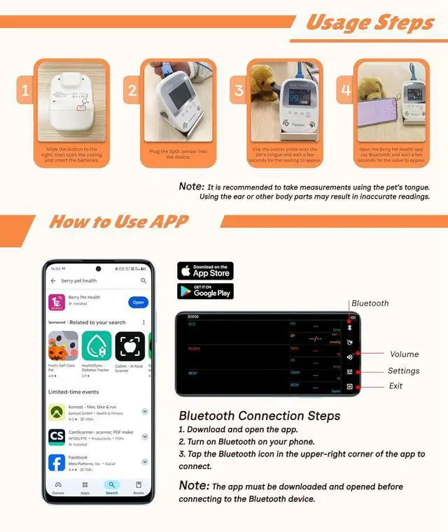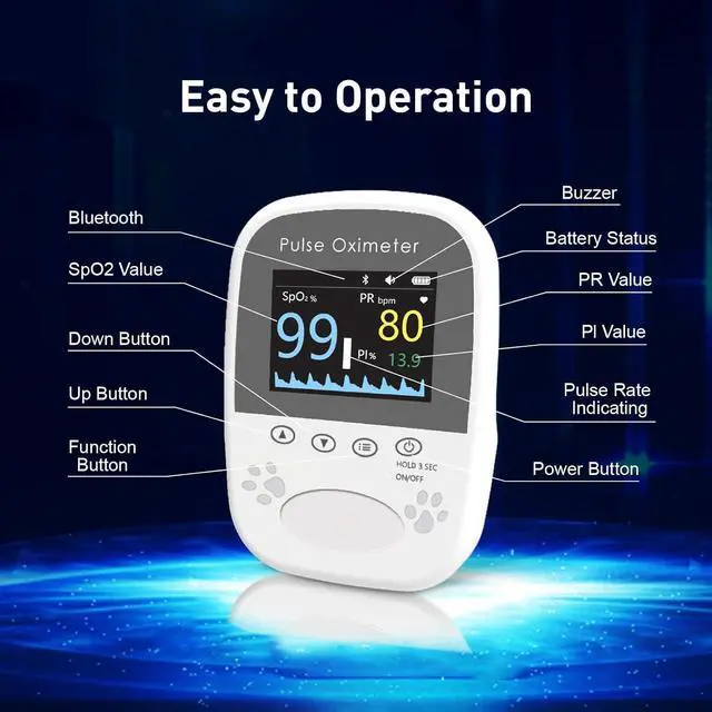 Free App Data Storage Veterinary Handheld AM1000A-Vet Blood Oxygen Saturation and Pulse Rate Tongue Probe Pets with Bluetooth