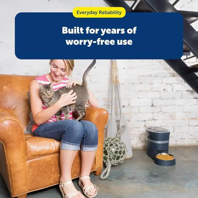 EASY MAINTENANCE: Lid, hopper, bowl and bowl holder are top-rack dishwasher-safe. Cleaning is a breeze, making this automatic pet feeder a must-have for every pet owner.