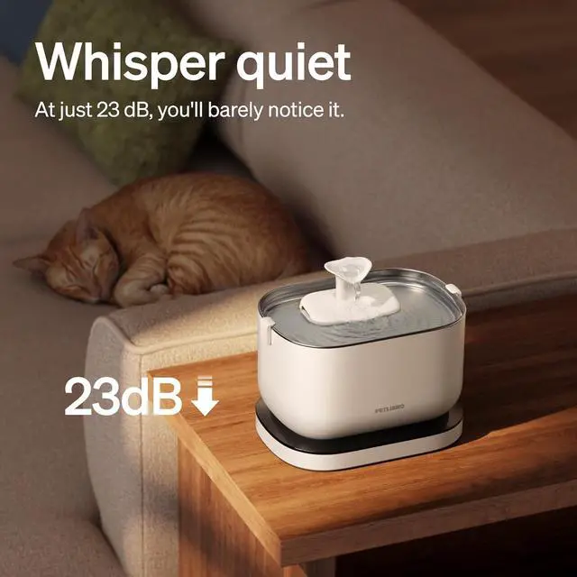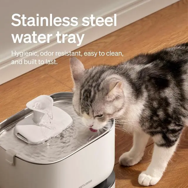Exceptional Battery Life - Powered by 5,000mAh built-in rechargeable battery, the PETLIBRO wireless cat water fountain with stainless steel tray delivers fresh, clean water on a full charge. It will keep your pets well-hydrated even during power cuts or when you take short trips.
