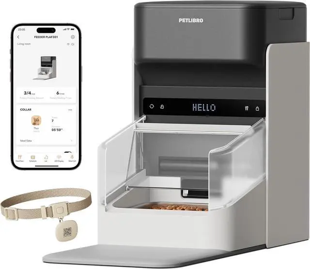 Cat Recognition for Personalized Meals: This Petlibro automatic cat feeder identifies your cat via a lightweight RFID collar tag sensor and unlocks the food bowl lid. Adjust the lid speed to suit your cat's comfort level. (Only supports the included RFID collar tag.)