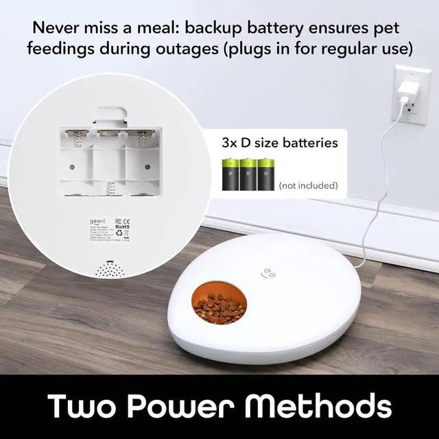 SMART AUTOMATIC PET FEEDER: Easily schedule feeding times and portions with the Geeni app, ensuring your pets are fed on time whether youre at home or away. This automatic pet feeder brings convenience to busy pet owners by delivering consistent, worry-free feedings.