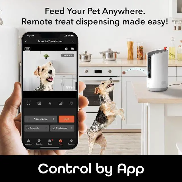 : Stay connected with your pets anytime, anywhere via the Geeni app on your smartphone, featuring a 2K HD camera for crystal-clear visuals and a wide 125-degree field of view.