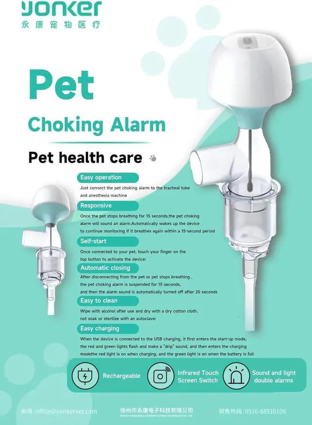 Pet Veterinary Apnea Monitor,Pet Choking Alarm Rechargeable Breathing Monitor for Veterinary Use, USB Charging, Sound and Light Alerts Easy to Clean,Support Pets of Various Weights to use