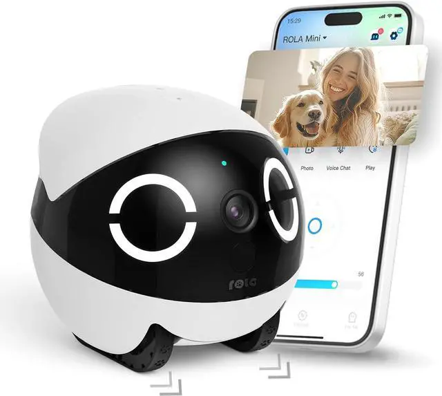 MOVABLE ROBOT & 2K RESOLUTION: Roll and roam, your pet's adventures come home! With 2K resolution, the ROLA Mini robot pet camera ensures stunning clarity for every adorable moment. Roam and catch every playful adventure in real time