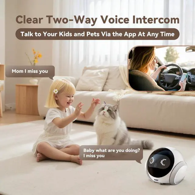 CLEAR 1080P CAMERA WITH NIGHT VISION: AEZ robot camera equipped with a 1080P HD camera, the pet camera robot captures adorable moments of your pets and family members in vivid detail, ensuring you never miss a precious instant. Infrared LEDs enable powerful night vision for clear monitoring around the clock