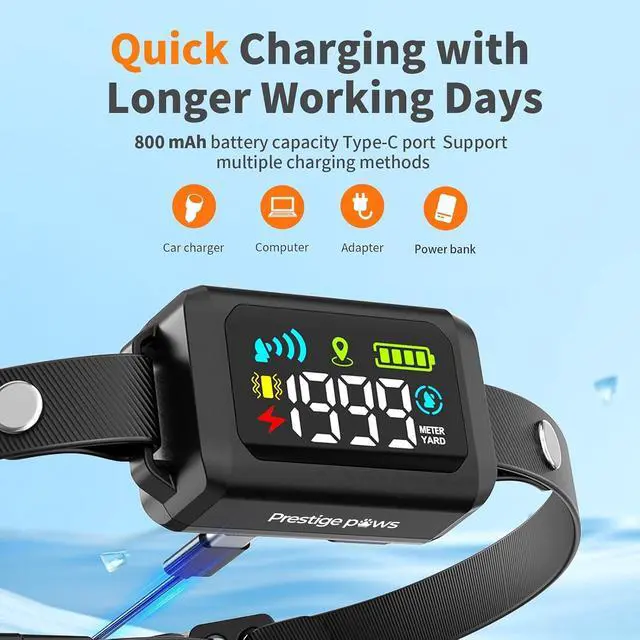 With a bright LED digital display, this collar lets you track distance, battery, and signal status at a glance. Fully adjustable and waterproof, it fits dogs of all sizes and lifestyles.
