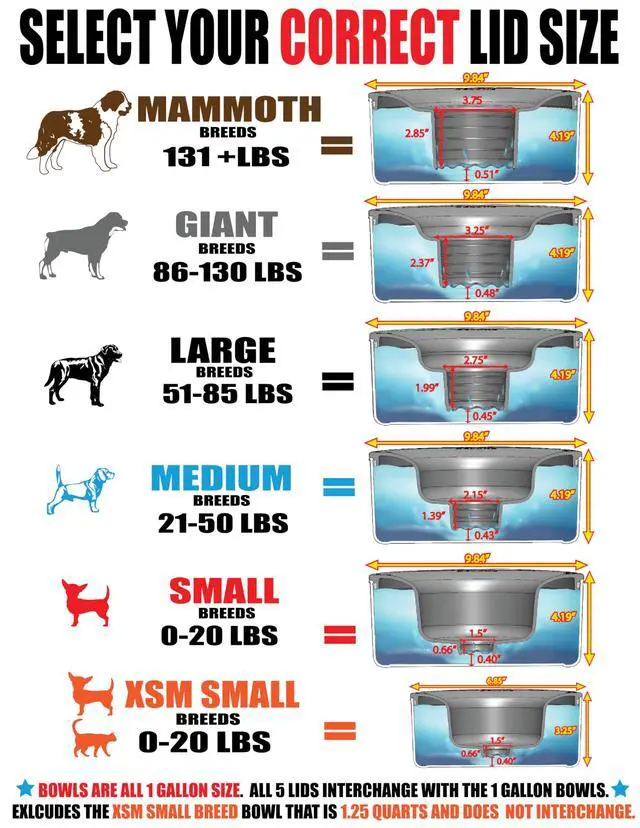 Are you tired of all the water trails to all parts of your house? The Dripless Water Bowl was designed to eliminate the constant mess dogs and cats make at their water bowl. The ingenious utility patented design helps eliminate the mess by over 85% or more, helps reduce accidental Slips and Falls from Wet Floors, Lid Design Keeps Ears Beard Feet and Snout Dry, Slower Drinking Means No More Choking On Water While Drinking, and its a great Travel Bowl. There is a Breed Size Model to accommodate all sizes of dogs up to 200+ Pounds. Breed Sizes Available: Five 1 Gallon Capacity Models. 0-20 Lbs (Small Breeds Unit), 21-50 Lbs (Medium Breeds Unit), 51-85 Lbs (Large Breeds Unit), 86-130 Lbs (Giant Breeds Unit), 131-200+ Lbs (Mammoth Breeds Unit). One 1.25 Quart Model 0-20 Lbs (XSM Small Breeds Unit). All five of the 1 gallon breed size models use the same 1 gallon capacity bowl which is interchangeable with all 5 Breed Size Lids in case you have a puppy or get another dog, you simply can buy a replacement lid for puppy growth or if you get a new dog you can avoid having to buy a whole new unit. Take time to get the correct size and if your dogs weight falls between sizes or has a long beard and you are unsure of sizing reach out to and they will make a size recommendation but most likely always size up in size if your dogs weight is on the weight limit. The Bowl and Lid are made using the Highest Industrial Strength Food Quality Materials. looks forward to you joining the Pack and letting Dripless Water Bowl Take Care of The Mess So You Dont Have To