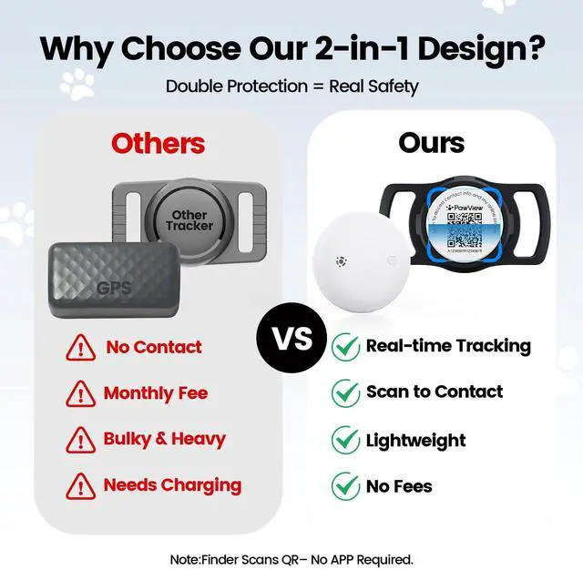 Still worried about your pet getting lost? Our 2-in-1 design—with QR ID tag and real-time tracking—crushes the limits of old-school pet tags. It blends two must-haves: anti-lost and live location tracking. Plus, it’s got smarter design and more dependable tech to keep you and your fur baby safe.