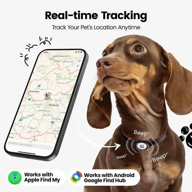 This gps tracker for dogs offers up to 1-year battery life with zero subscriptions. IPX6 waterproof design lets your pet run freely through mud and rain. Instant setup for pet collars. Durable, sleek, and reliable. Get yours today!