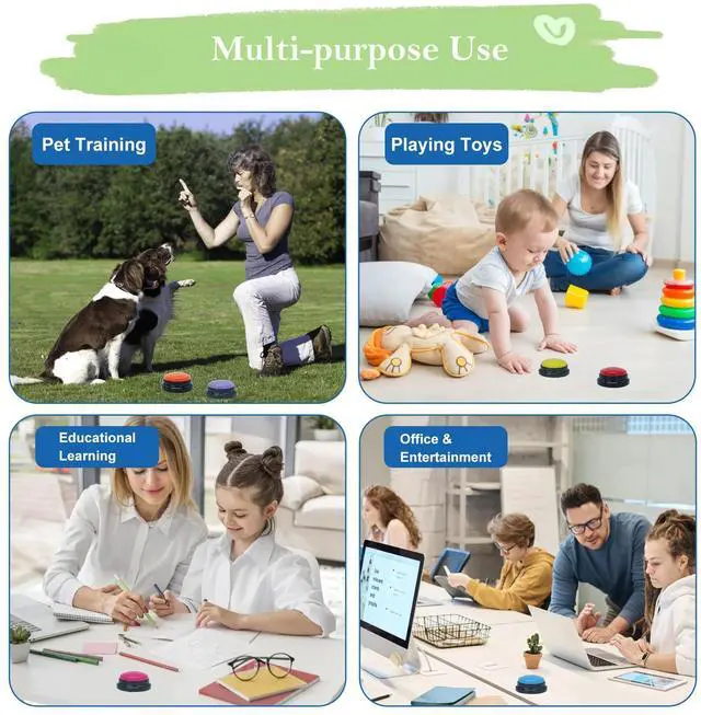 Customizable Sound & Easy to Use: Each of these dog talk buttons allows you to record up to 30 seconds of sound, making them perfect for both dog training and classroom activities
