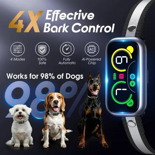 Dog Bark Collar Pro, Instant Bark Solution, Smart Anti Barking Device with 4 Correction Modes, Fast-Acting Barking Collar for for Large Medium Small Dogs 5-150lbs, Ideal for Home & Outdoor Use