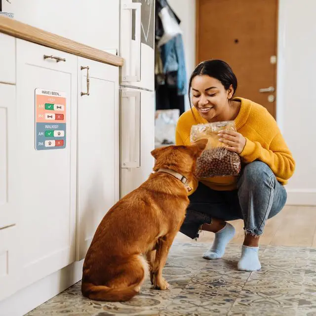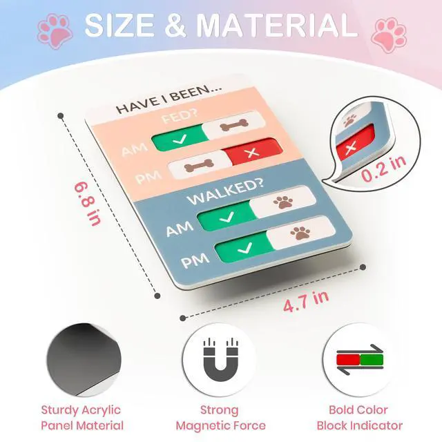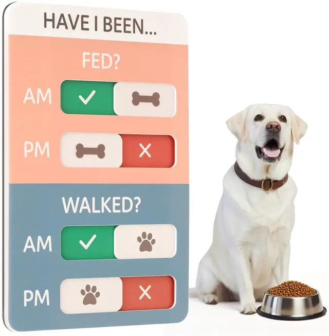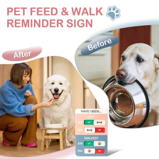 Dog Feeding Reminder, Dog Fed Sign Tracker -Daily Am/Pm Chart Slider Sign for Pet Fed and Walk Reminder, Easy to Use On Fridge Or Wall with Adhesive and Magnet,Pet Supplies