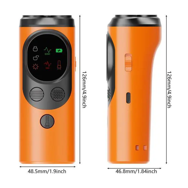 5-in-1 Training Tool with LED Flashlight: Combining Ultrasonic, Sound, and Flashlight modes with two ultrasonic frequencies (25kHz fixed & 1530kHz variable), this bark deterrent is more than just a training device. The built-in LED flashlight is perfect for late-night walks, jogging, or cycling, while the flash mode deters aggressive or unfamiliar dogs, keeping both you and your dog safe outdoors.