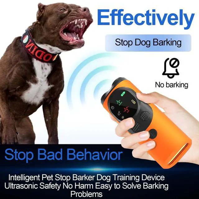 Anti Barking Device for DogsWith just a single, quick click, youre in control! You can instantly halt those irritating behaviors such as barking, digging, and chewing. Forget about those collars that rely on contact, which might cause stress or discomfort to your beloved furry companion. And heres the best part: these dog bark deterrent devices can even quiet down your neighbors yappy dog from a distance. Bid farewell to those annoying barks once and for all!