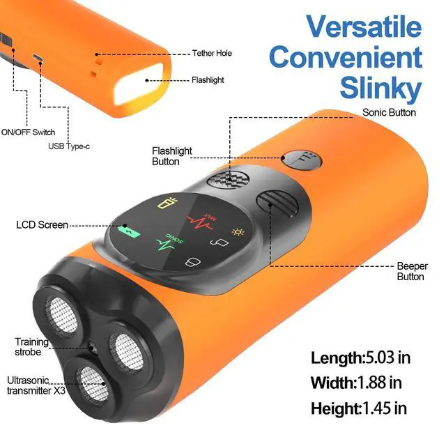 Multi-Function & LED FlashlightThis dog bark deterrent devices are outfitted with a high - powered LED flashlight, perfect for safe nighttime walks. Its designed to fulfill all your training requirements. Whether youre conducting daily training sessions or aiming to correct bad behaviors, this anti - barking device for dogs gets the job done. Different frequencies suit different dogs. No more getting exasperated by barking. Just relish the tranquility!