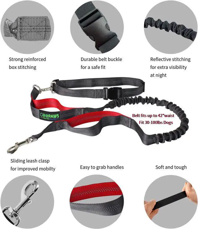 Walking or running with your furry friend has never been easier than with the Jespet Bungee Reflective Standard Dog Leash! This handy leash is designed with an adjustable waist belt and a bungee feature, that allows you to keep your hands free, so you can hold your belongings and check your phone. And the lightweight waist belt is also reflective, so its safe to use at night, too! This leash also has two handles and a short length, so you can keep your paw-tner nice and close to you without tripping over him. And the lightweight waist belt is also reflective, so its safe to use at night, too!