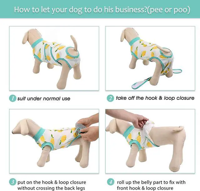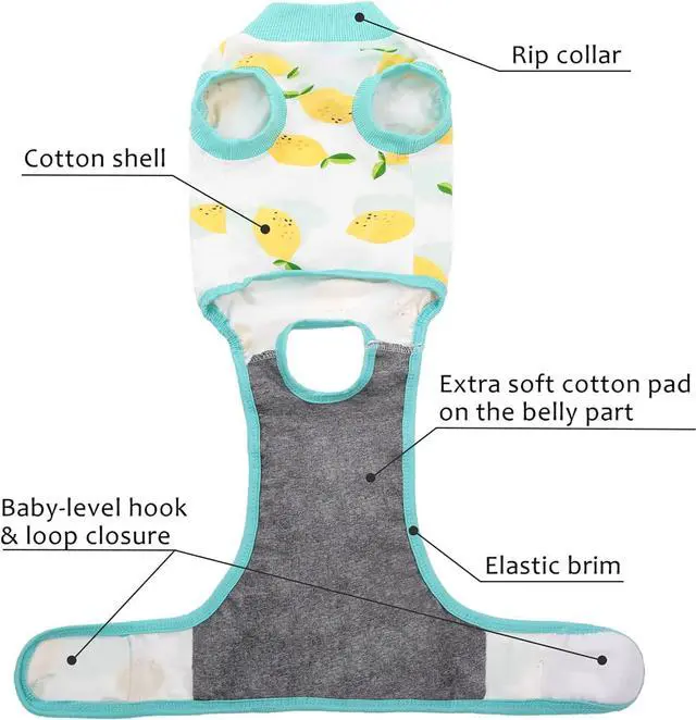 • High-elastic Breathable Fabric 95%cotton 5% Spandex, super soft, comfortable, washable and dry quickly. Allow your dog to do his business by rolling up design. 100%cotton under belly part, protect this special part and allows to put pad on it. Specially woven fabrics deter most animals from excessive licking.