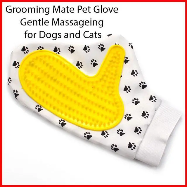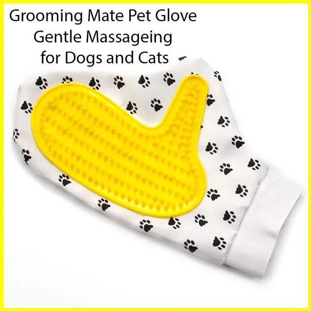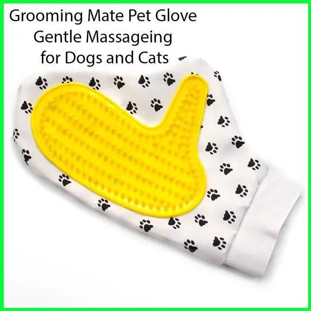 Grooming Mate Pet Glove Pet's favorite groom glove gives your pet dogs & cats a smart tidy look. A grooming mate is your pet's favorite friend. No pet can resist its feeling. Grooming mate gives an ultimate massage and lifts all the unwanted hair and dust. One size fits all. Easy to clean with no fuss or mess. Also useful for carpets furniture fabric and upholstery. You'll never have to go to the groomer again when you have this effective trimmer.
