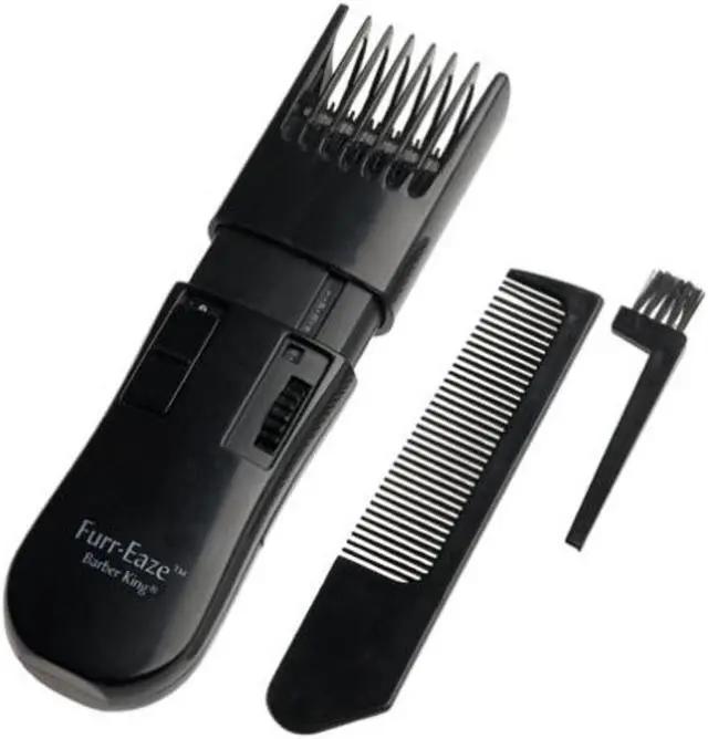 Barber King Furr-Eaze Pet Trimmer -- Give your pet a pro trim without the pro price. Now you can give your pet a professional quality trim without the high cost of a pet groomer! Furr-Eaze allows you to give your dog the perfect trim in the comfort of your own home. Excellent for any light trimming around face, ears, legs and paws. Cordless, compact and easy to use! Furr-Eaze is the ultimate pet trimmer that will keep your dog looking its best all the time. Furr-Eaze features long-lasting stainless steel blades, six length settings, and protective carrying case.