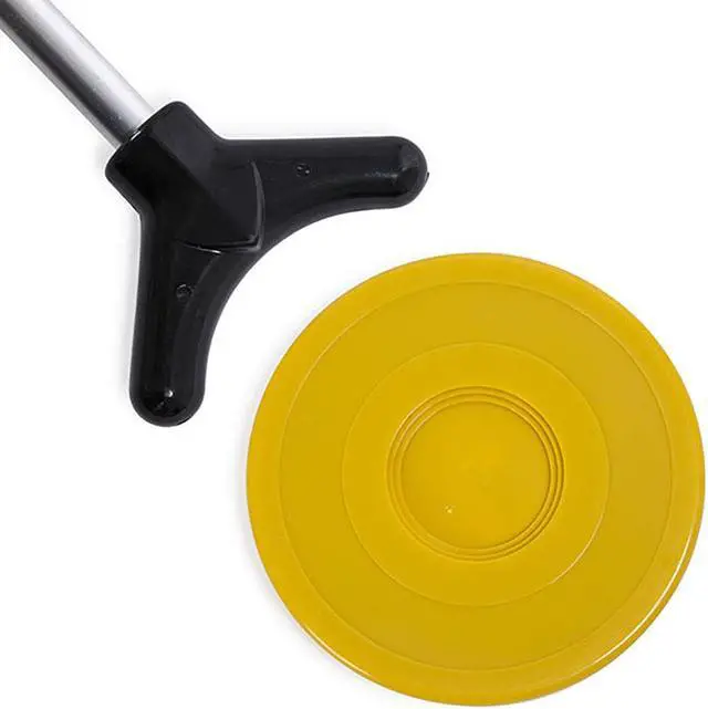 The cue sticks measure about 66 inches long and the pucks measure about 8 inches. The cues are made from aluminum, while the pucks are made with BPA-free Durex plastic for safe gameplay and long-lasting durability.