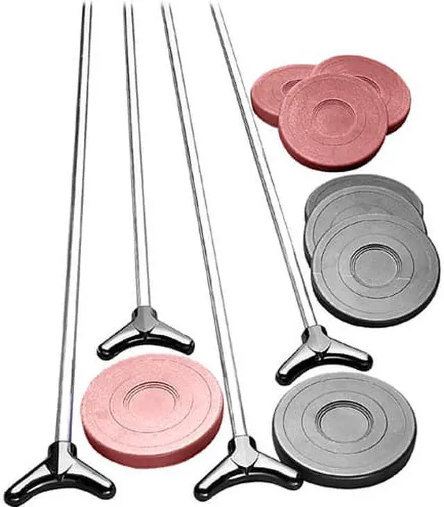- Play with up to 4 people as 4 cues, 8 pucks are included so you can start playing right away